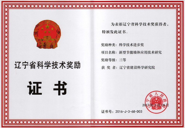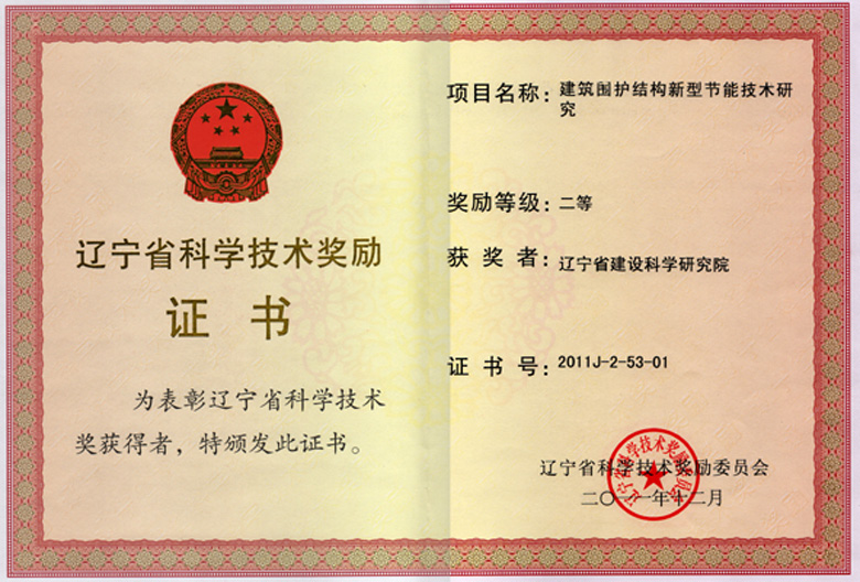2011省二等-建筑围护结构院证书