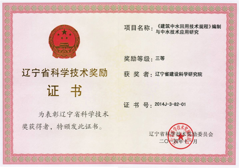 2014省三等-建筑中水回用技术规程编制与中水技术应用研究