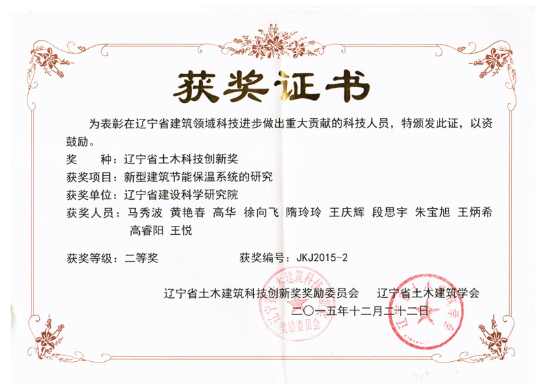 2015-辽宁省土木科技创新奖二等奖